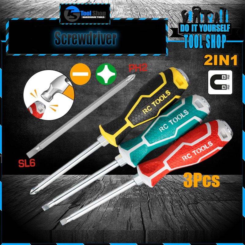I don't know my zip code3 Pcs 2 Way Screwdrivers Good Performance Handle Two Way Slotted Flat-Head Screwdrivers Phillips Screwdriver Comfort Sof Grip