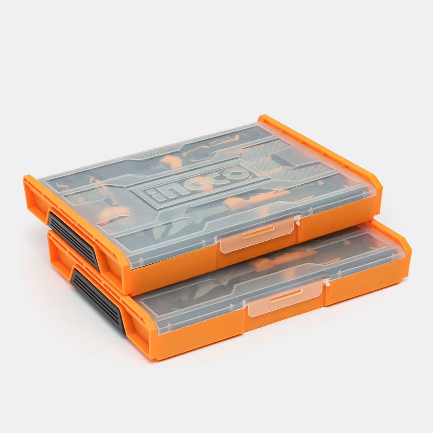Packed by stackable plastic box