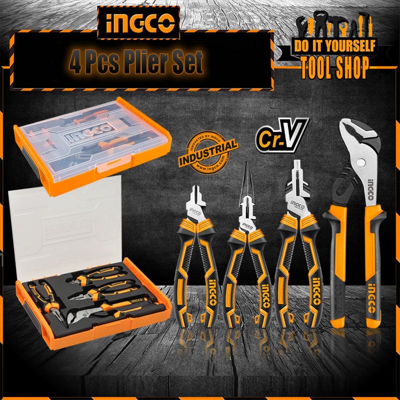 | Model | Ingco 4 pcs High Leverage Pliers Set Diagonal Cutter, Combination Plier, Long Nose Plier, Waterpump Pliers with box Case- Industrial – CrV HKTV01P042 |