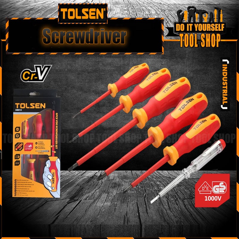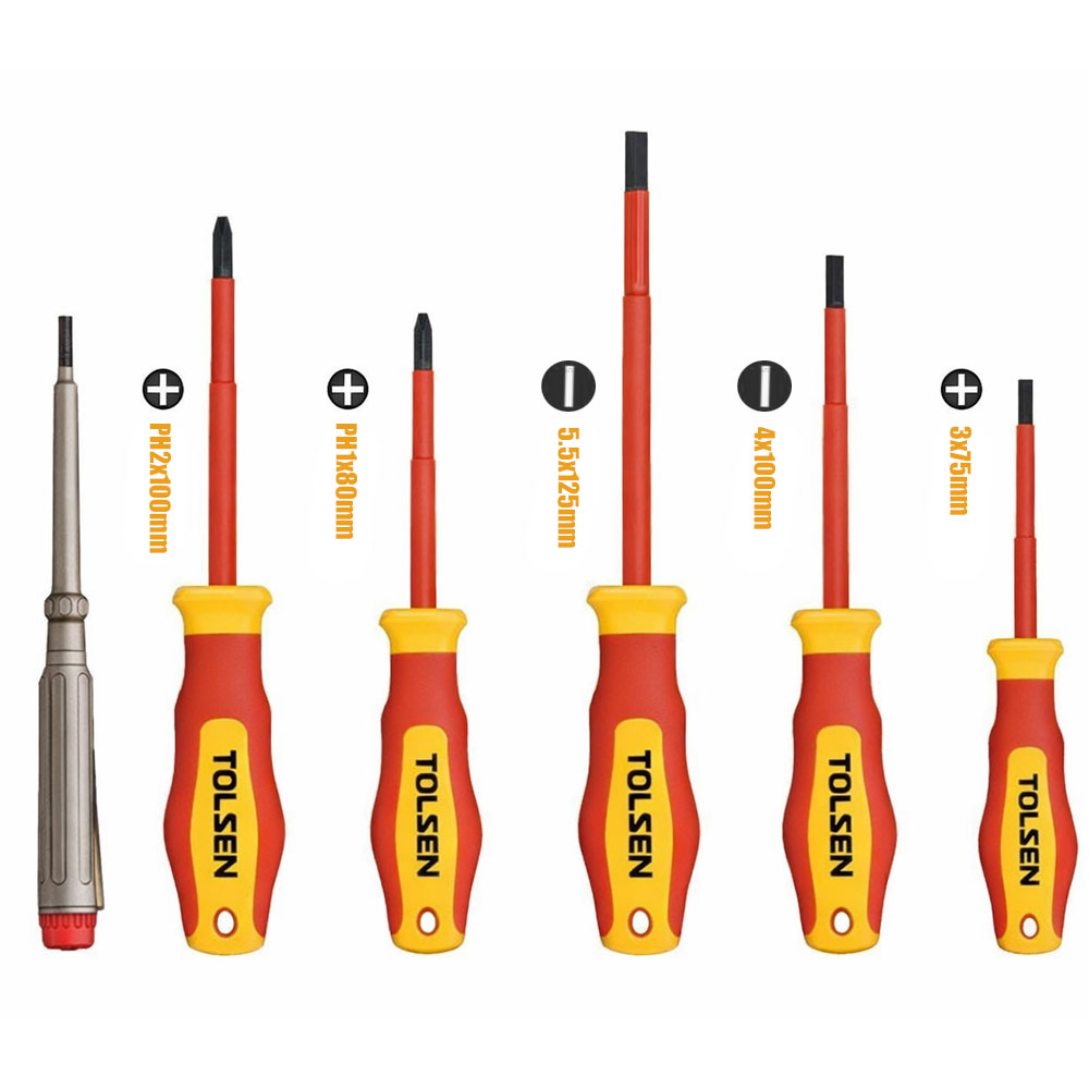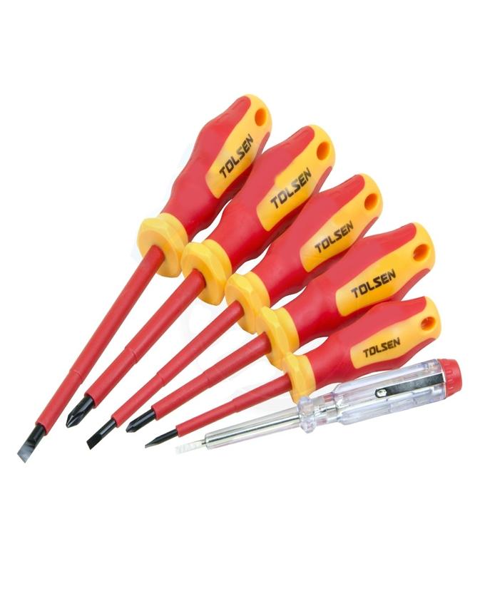 Tolsen 6pcs VDE Power Insulated 1000V Flat Phillips Handle Screwdrivers Set 38013
