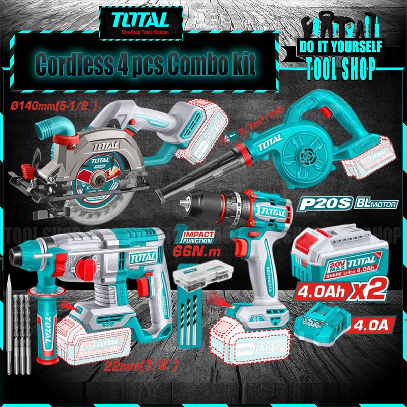 | Packed by carrying case Total Cordless 4pcs Combo Kit |
