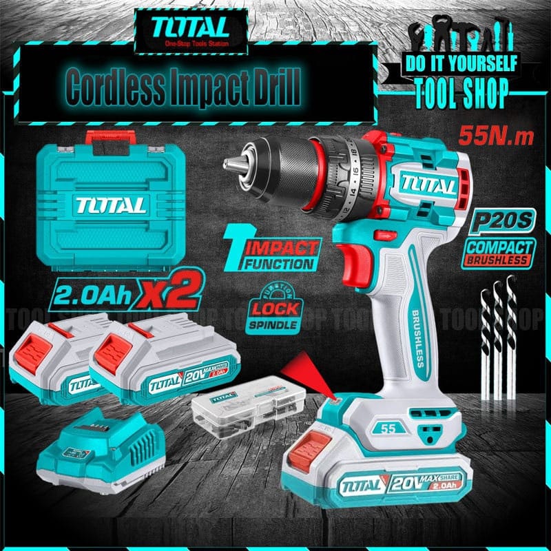I don't know my zip codeTotal impact Lithium-Ion Cordless Drill 20V with 2x Battery & Charger 47 Pcs Accessories and with case TIDLI20558
